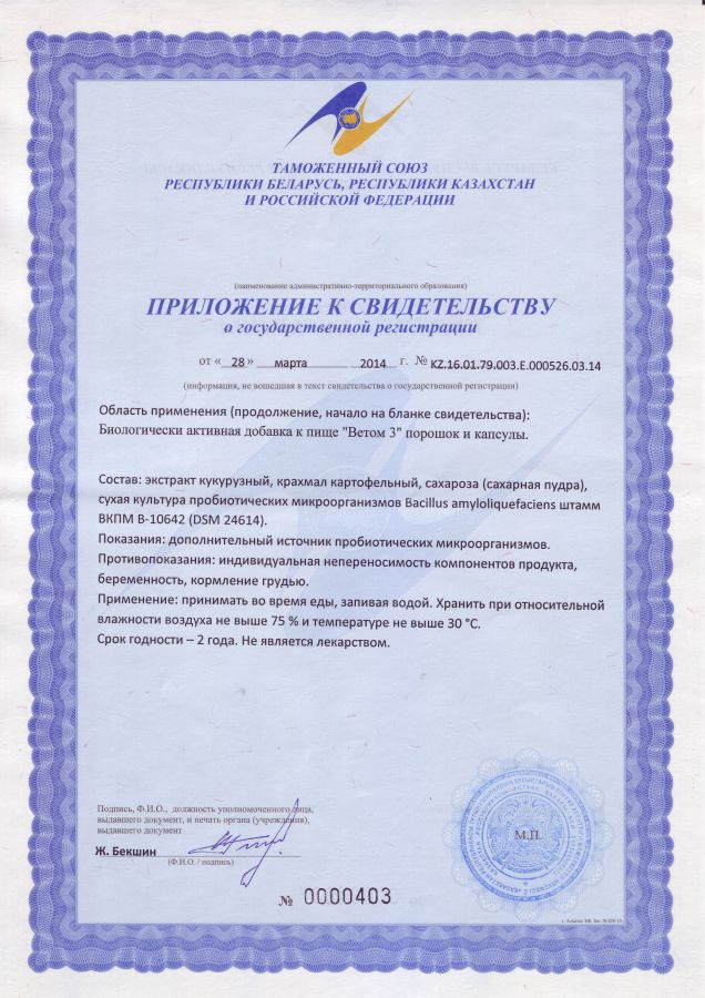 БАД Ветом 3 не является лекарством.