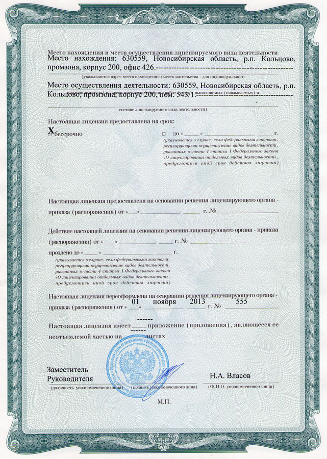 Лицензия на осуществление производства лекарственных средств для ветеринарного применения |