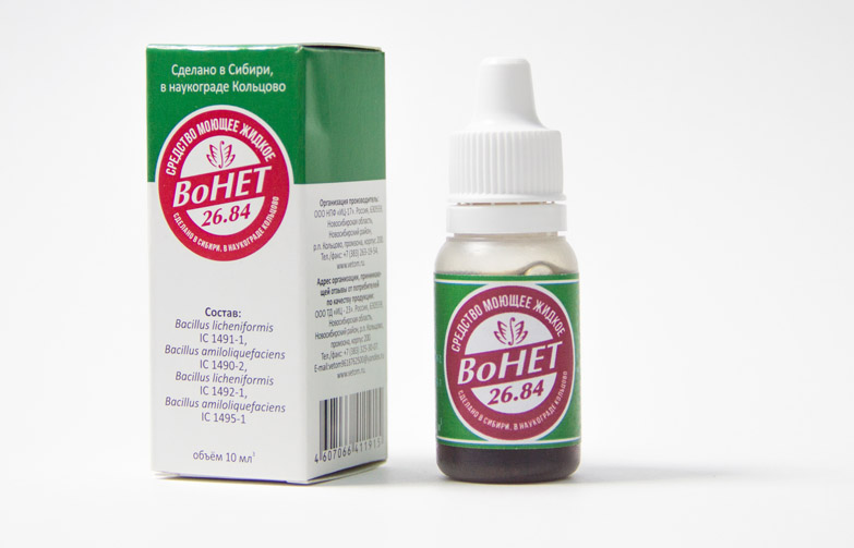 Средство моющее жидкое Вонет предназначено для устранения неприятных запахов обусловленных гнилостными процессами протекающими в органических субстанциях – фекалиях различного типа в том числе навозе скапливающемся на животноводческих, птицеводческих и иных предприятиях, отходами сконцентрированными на горводоканалах и свалках, мусоропроводах и мусорных баках установленных в жилых зонах, других местах.