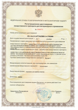 Номер регистрационного удостоверения: 35-1-16.13-1477№ПВИ-1-4.7/02080